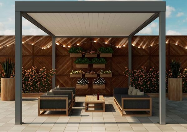 Elevate your outdoor space with a sleek bioclimatic pergola featuring motorised adjustable louvres for full control over sunlight, shade, and ventilation. Made from durable, weather-resistant aluminium, it’s perfect for patios, gardens, rooftops, and commercial spaces.
