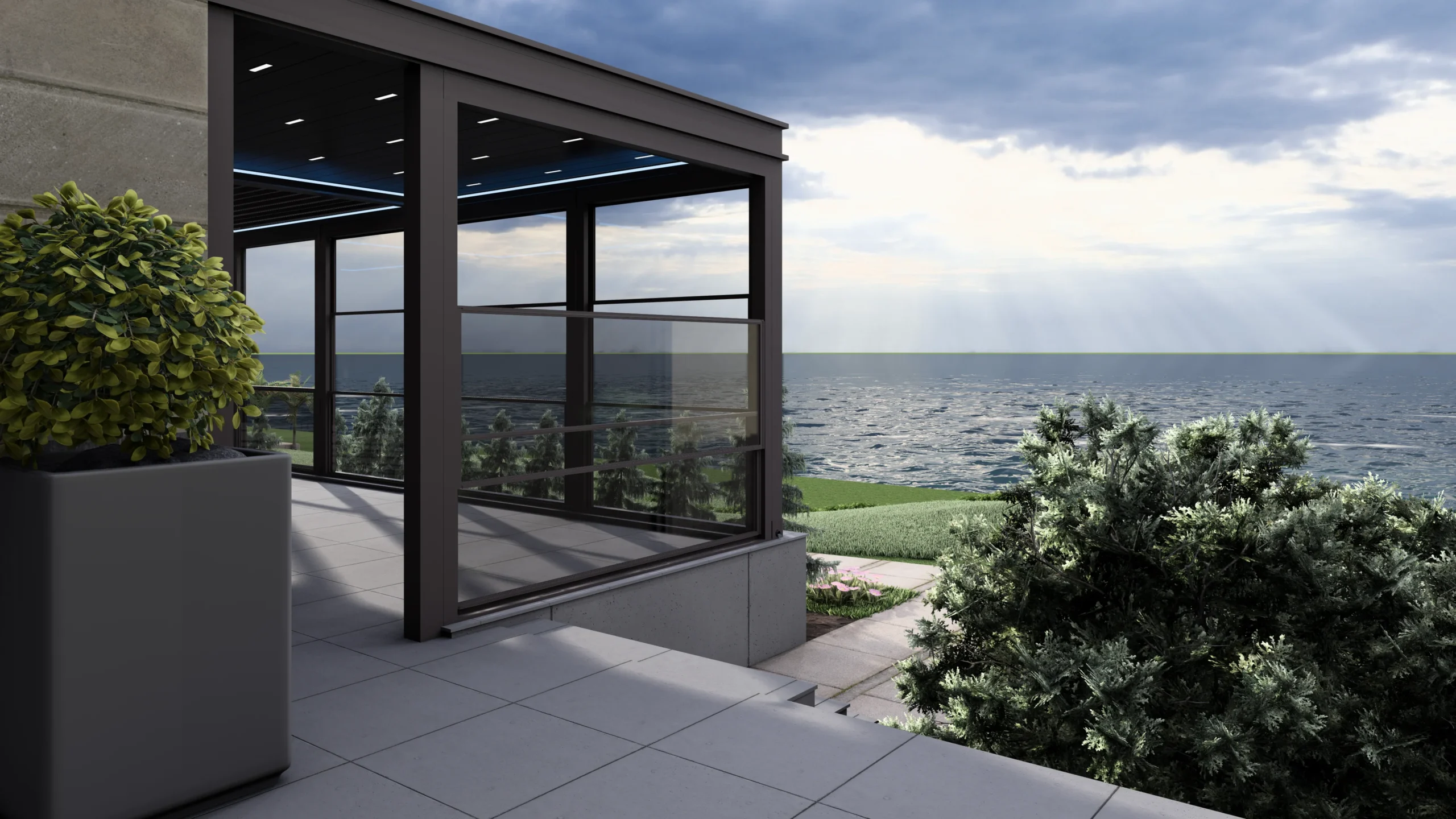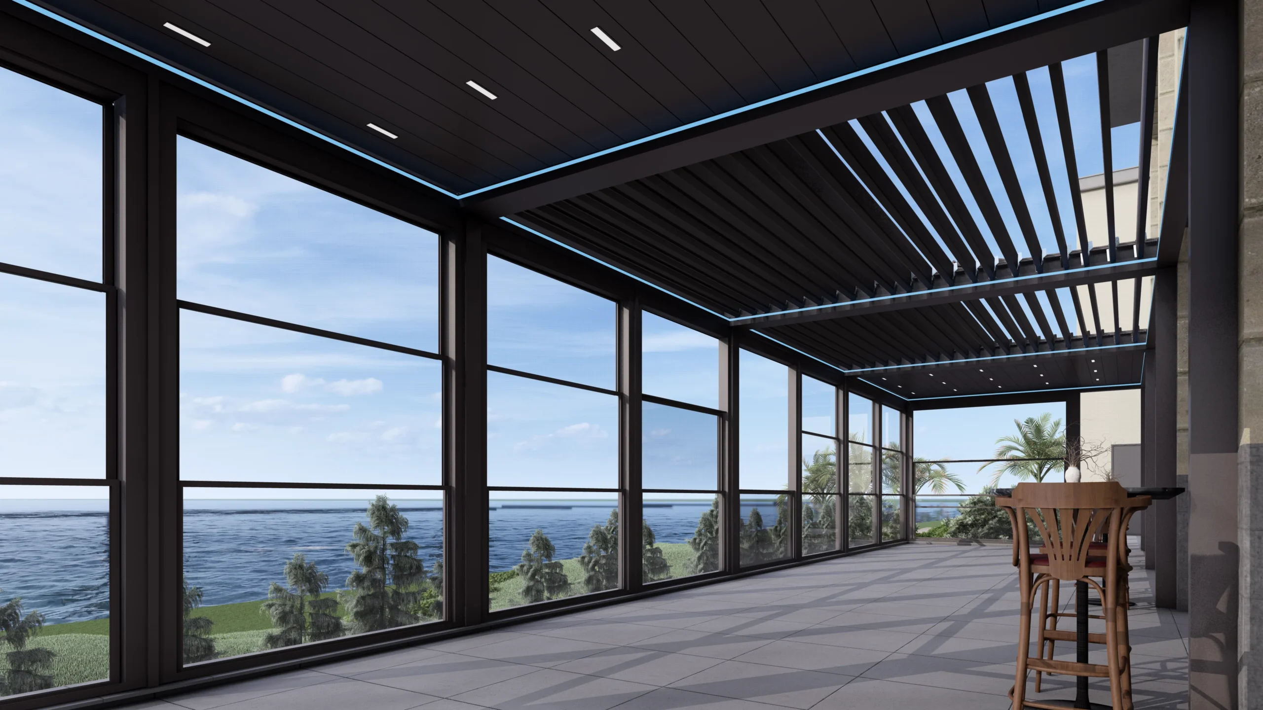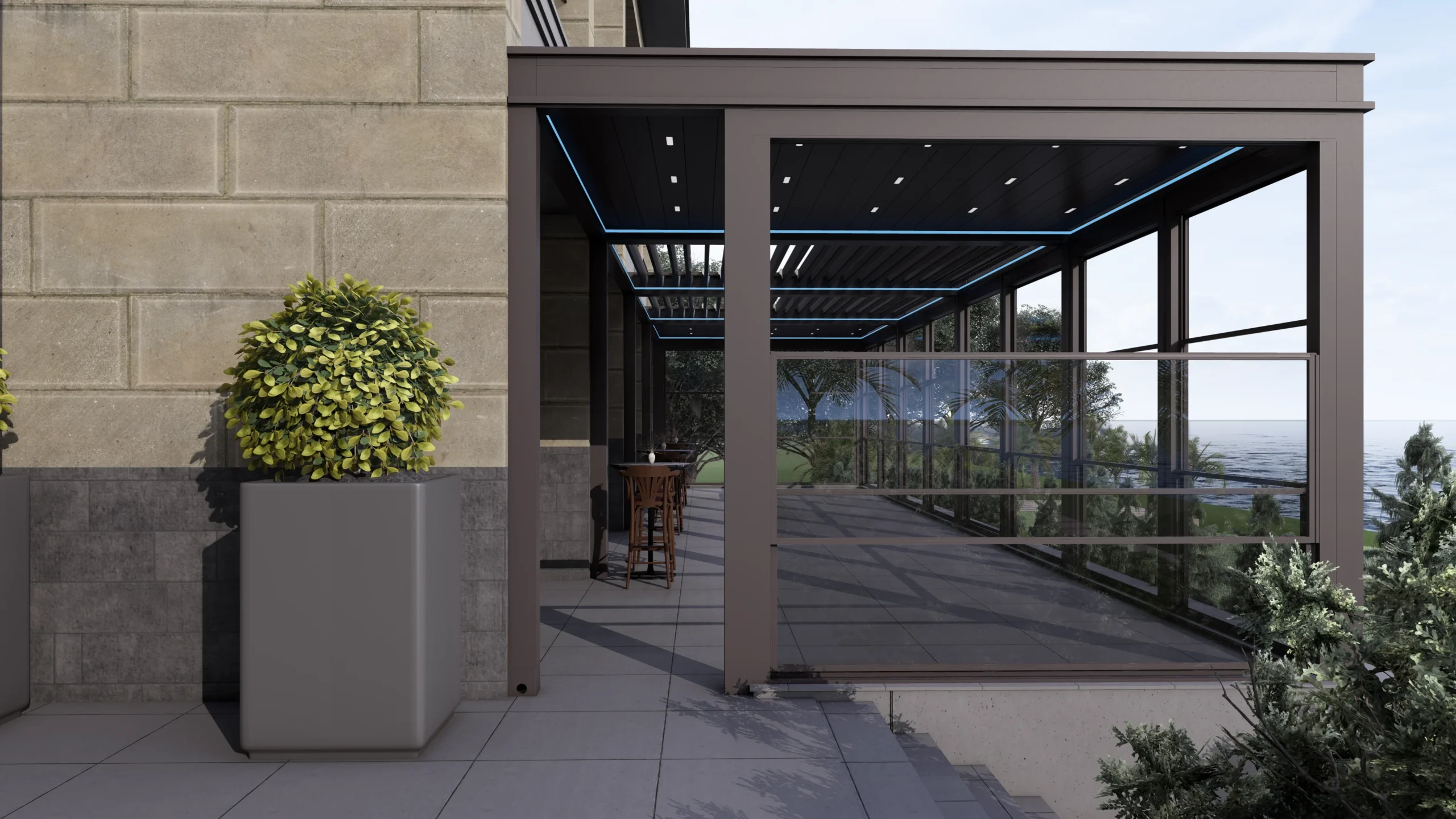 Skyline Glass systems are equipped with an intelligent drainage mechanism that effectively collects and removes condensation, preventing water buildup and keeping surfaces clean and dry. This advanced performance protects the terrace from extreme temperatures, providing a pleasant and energy-efficient space, ideal for year-round use.