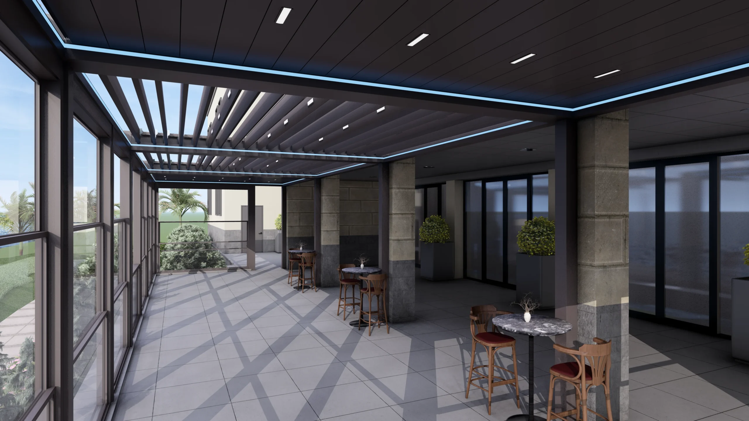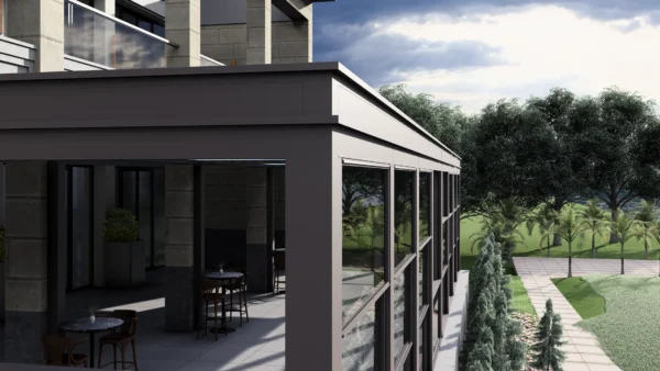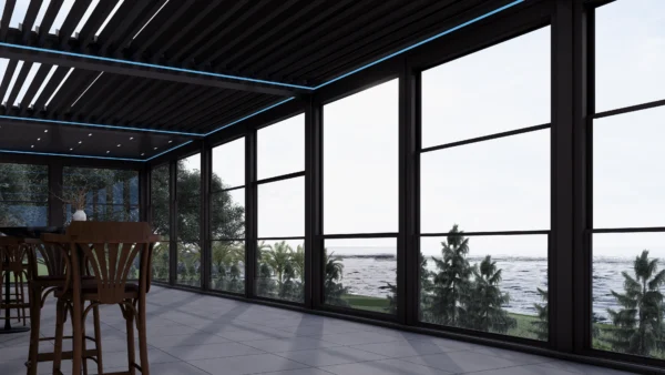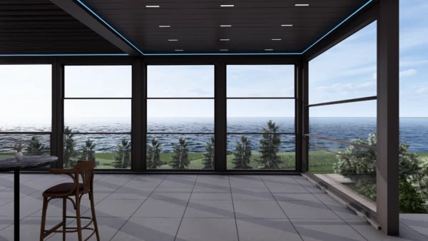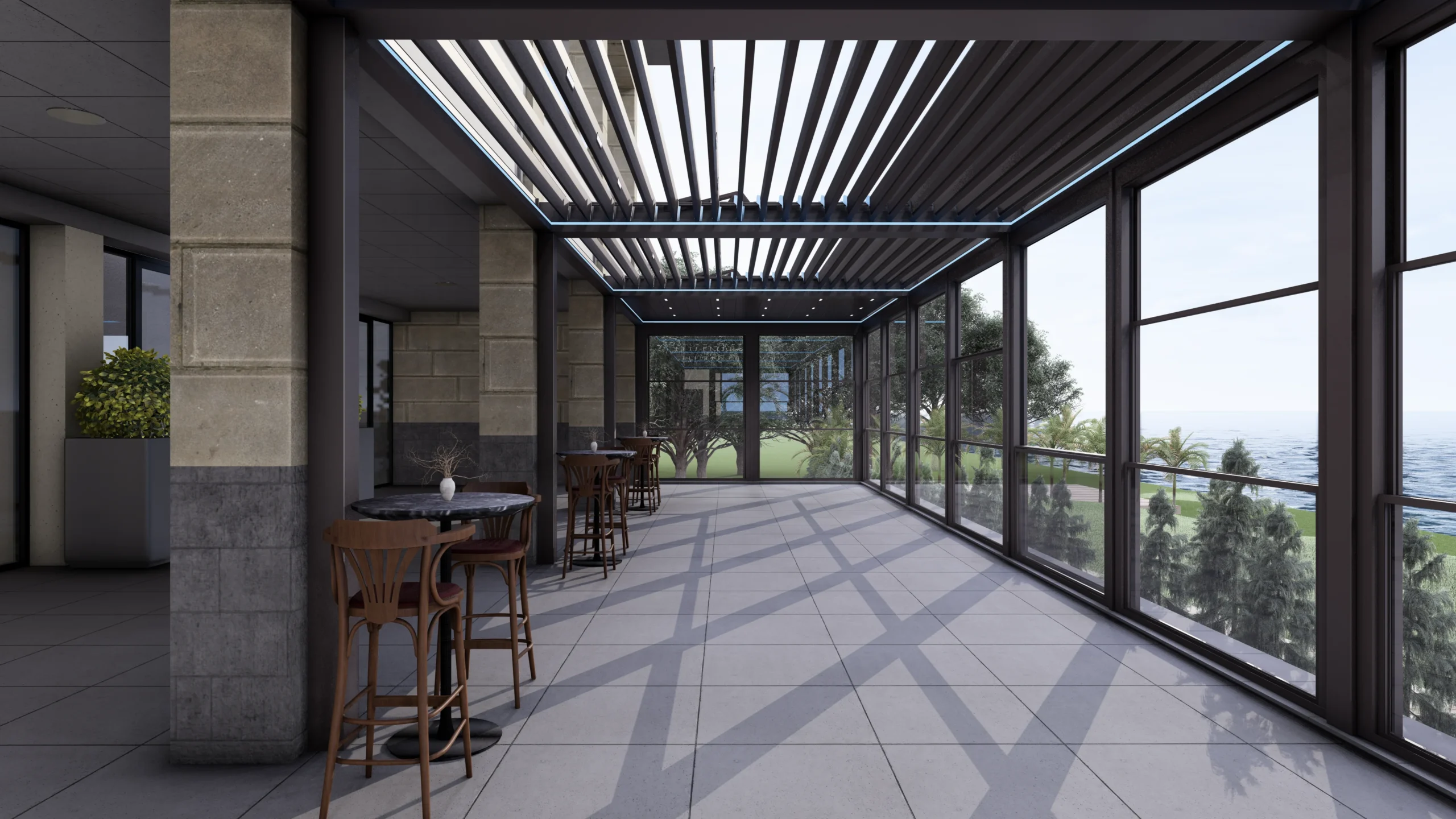 Skyline Glass systems are equipped with an intelligent drainage mechanism that effectively collects and removes condensation, preventing water buildup and keeping surfaces clean and dry. This advanced performance protects the terrace from extreme temperatures, providing a pleasant and energy-efficient space, ideal for year-round use.