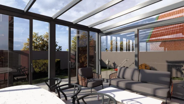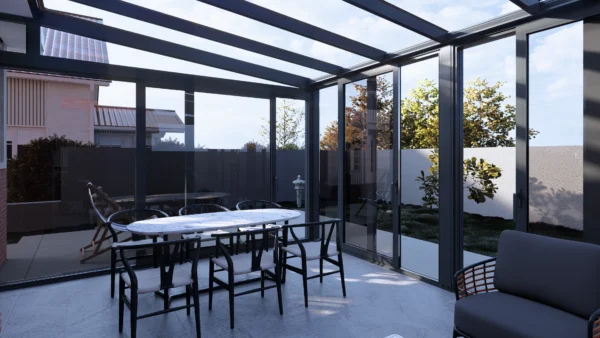 “Our Enclosed Glass Verandas with a durable tempered glass roof offer the perfect all-season solution for homes and commercial spaces alike. Designed to withstand extreme weather, they create a seamless indoor-outdoor experience. Customize with sliding or sash thermal glass panels and enjoy peace of mind with a 5-year warranty.”